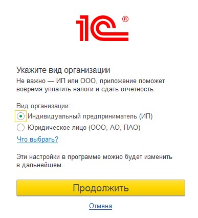 Рассмотрим, как начать вести учет бизнесмену, использующему ПСН в 1С: Бухгалтерия ред. 3.0.При первом включении программы, вам потребуется выбрать тип организации. В связи с тем, что в этой статье мы рассматриваем патентную систему, а её могут использовать лишь индивидуальные предприниматели, то выбор стоит сделать в пользу ИП.