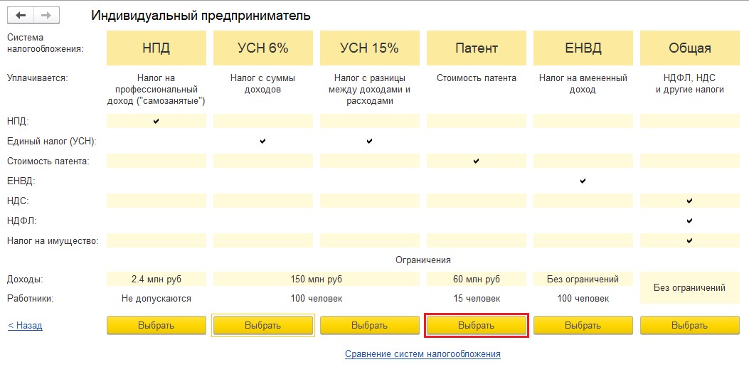 Можно считать этот функционал удобным, так как срок патента может составлять от одного до двенадцати месяцев. Естественно, по завершению срока надо или подавать новую заявку, или менять режим.