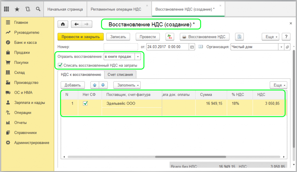 Восстановление НДС в 1С 8.3: пошаговая инструкция