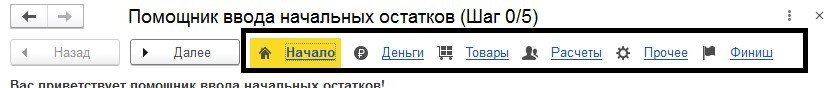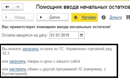 Документы в 1С:УНФ создаются через удобный интерфейс «Помощник ввода начальных остатков» (Рис 1). Вы можете обратиться к нему: