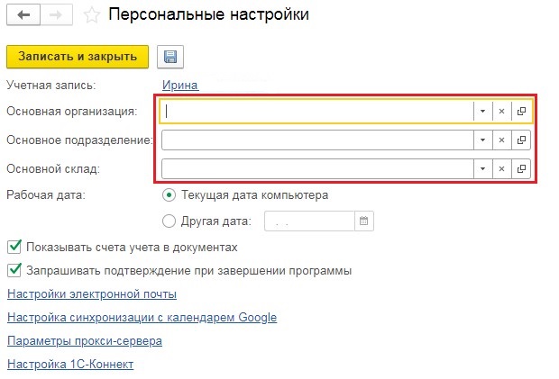 Встречаются также ситуации, когда в перечень трудовых обязанностей сотрудника входит обработка документов по конкретному складу или контрагенту. Наиболее популярные значения можно задать в настройках, и они будут заполняться по умолчанию при создании нового документа. Как это сделать и будет рассмотрено ниже.