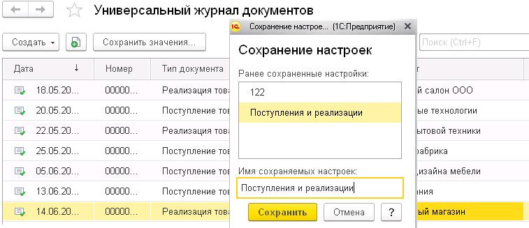 Когда будет утверждена созданная схема, пользователь получит список документов, которые были выбраны по типу. Для выполнения изменения можно повторно последовать в настройки, чтобы отредактировать графы и список документов. Работа с универсальным журналом ничем не отличается от обычного. Можно также будет открывать документы, изменять их, настраивать, создавать новые и тому подобное.